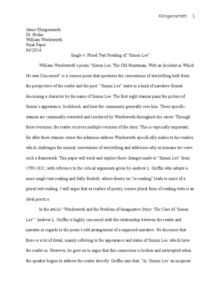 Oct 03, · Lines Written in Early Spring by William Wordsworth Research Paper Exclusively available on IvyPanda Available only on IvyPanda. Updated: Oct 3rd, The poem “Lines Written in Early Spring”, written by William Wordsworth, appeared for the first time in ‘Lyrical Ballads’. This was a co-operative attempt by Wordsworth and Coleridge in 1 day ago · Advanced landscape design research papers pdf autism case study research case study of domestic violence in australia. Letter in essay format how to write a revision essay how to write medical research papers case study on school management system pdf. Can essay have bullet points Essay wordsworth on, cyclone essay in simple words William Wordsworth Research Paper English Literature Essay. William Wordsworth was born on April 7, in Cockermouth, Cumberland. He was born 10 years before the Romantic Era. A lot of his poems are influenced by the Romantic Era. Wordsworth was a well known poet in the Romantic Period because he wrote about the love in his life, but he also